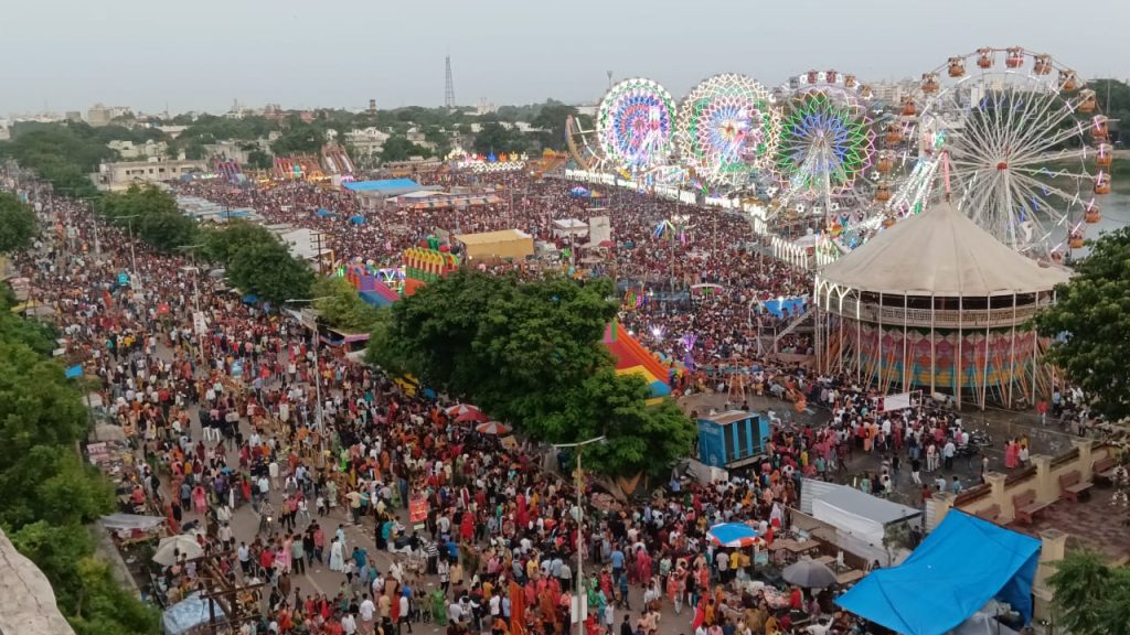 Food stalls offering traditional Gujarati snacks, sweets, and street food have become a major crowd puller. From farsan and jalebi to regional delicacies, the mela provides a complete festive experience for visitors.